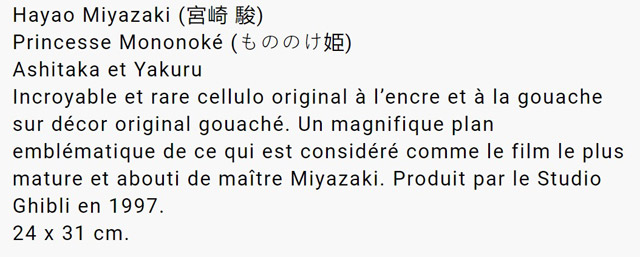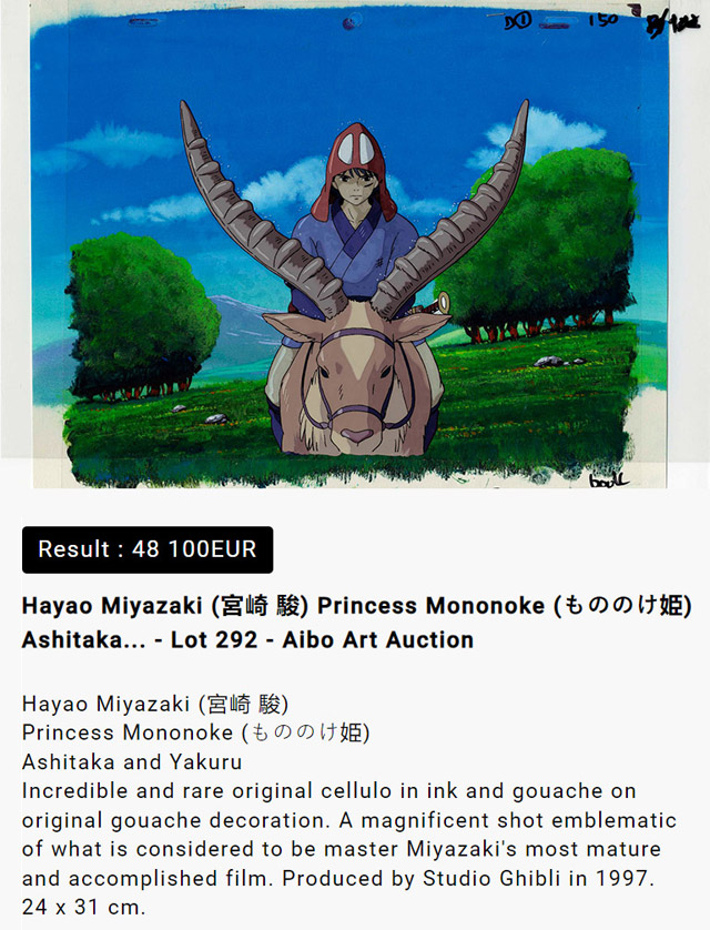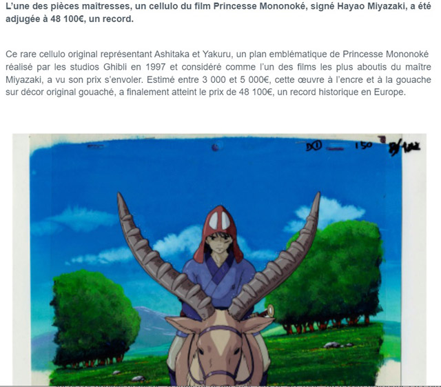 En effet, ce communiqué mettait en avant la vente d'un cel (cellulo) original de Princesse Mononoke au prix délirant d'environ 50 000 euros via une opération réalisée sur ce qui semble être une maison de vente aux enchères *professionnelle* française (et dont je ne ferai pas de lien/promo).