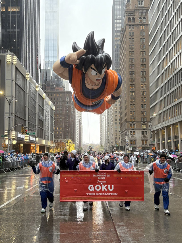 Comme prévu/teasé, un ballon géant de Son Goku s'est envolé aujourd'hui lors de la traditionnelle Macy's Parade organisée chaque année à New York (USA) pour Thanksgiving.